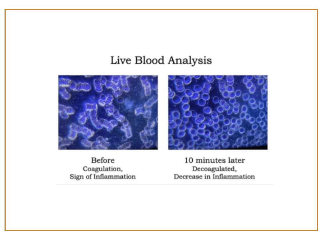 Lab results of a Live Blood Analysis 10 minutes before and after